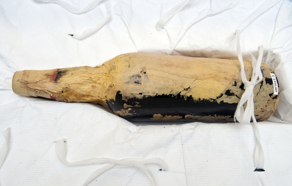 The handover marks part of the final stage in a remarkable journey. After excavating the whisky one crate was flown to Canterbury Museum, New Zealand under permit from the New Zealand Government and thawed by Programme Manager Lizzie Meek, revealing eleven bottles of Mackinlay’s whisky.