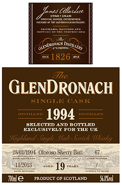 GlenDronach 1994 / 19 Year Old / Single Cask #67 Bottled Exclusively For The UK