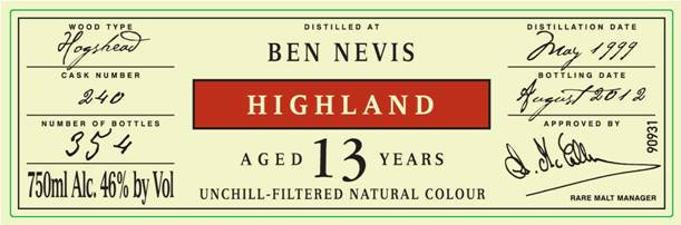 Ben Nevis 1999 13 Year Old (Chieftain’s) Single Malt 92 Proof – $88.99