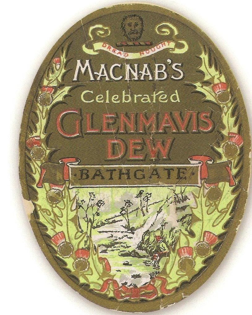 Thanks to Alfred Barnard, the great Victorian brewery and distillery cataloguer, we have a clear picture of the distillery in 1887: to take advantage of gravity the buildings were on a slope with power supplied via a waterwheel while process water came from two reservoirs. Barnard used the word ‘rustic’ to describe the operation, noting unlike nearly all distilleries of the day worts were cooled by fan rather than the ubiquitous Morton’s refrigerator. 16 staff were employed and enough draff produced to feed the distillery’s 65 cattle. Room for 2000 casks was found between the two warehousing sites. Production ended in 1900 with 1910, coincidentally the year of John MacNab’s grandson’s (also John like his father) death, filed as the date of closure, the intervening 10 years presumably spent maintaining and selling stock. For the next forty years the distillery buildings stood unused. The brand associated with the company was ‘MacNab’s Celebrated Glenmavis Dew‘, a local bar still has a mirror branded with the mark. Today Inverhouse retain the rights to the brand having used Glen Mavis as a standard blend. The final years of the buildings saw them being used for munitions storage during the second world war, as the home to Glenmavis Amateur Boxing Club (one of its members, Willie ’Buff’ Maclean operated a pub called ‘The Glenmavis Bar’ when he emigrated to Vancouver) then latterly as a car showroom and garage before being demolished to make way for a handsome residential development. All that is now left is Glen Mavis house – the manager’s home. It should be noted that another family, McNab, is unrelated to John MacNab. The McNab brothers were active in grain distillery associations and were owners at Tambowie, Lasswade, Cowie and Glenochil distilleries.