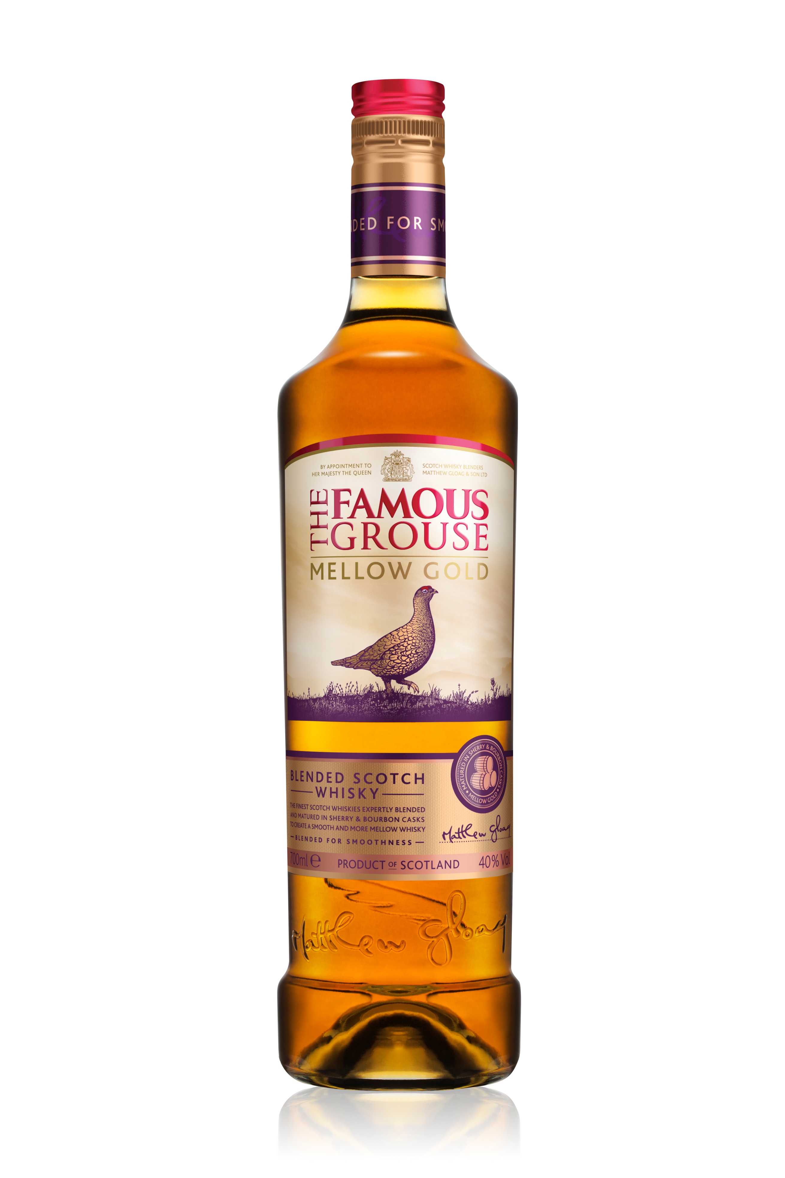 The Famous Grouse Mellow Gold has been Blended for Smoothness and carefully crafted by Master Blender Gordon Motion. The master blender’s art is on full display, blending the finest scotch whiskies, matured in sherry and bourbon casks to deliver a smooth, well rounded whisky. Mellow Gold’s recipe has a higher proportion of sherry casks than The Famous Grouse to deliver a subtly sweeter, mellow flavour.