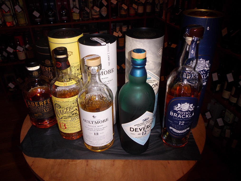 On a wet night we tracked doon to Exel shop once again for a tasting … Big Ross I know very well, lives in Perth but working at the Aberfeldy Distillery, some may know as Dewar’s. Guess who was first there? Aye well, needed to get out of the rain (my excuse), shook hands and chatted with big man, havnee seen him in ages, so caught up a wee bit, “who are you tonight?” he asked (it’s a facebook thing, didnee know to call me Paul or Sean), it’s nice to be nice eh? We got underway … first up was the Aultmore, this has been on the shelves around a year I think, it is light, fruity at 46%, non chilled no colour in ex Bourbon casks/barrels. No smokiness here, more floral than mineral, it’s a nice starter from this “Buckie Road” distillery near Keith, the aptly named Foggie Moss goes into quite a few blends, however this 12 year old was quite nice, but would need to move on to another after a few, as we did.