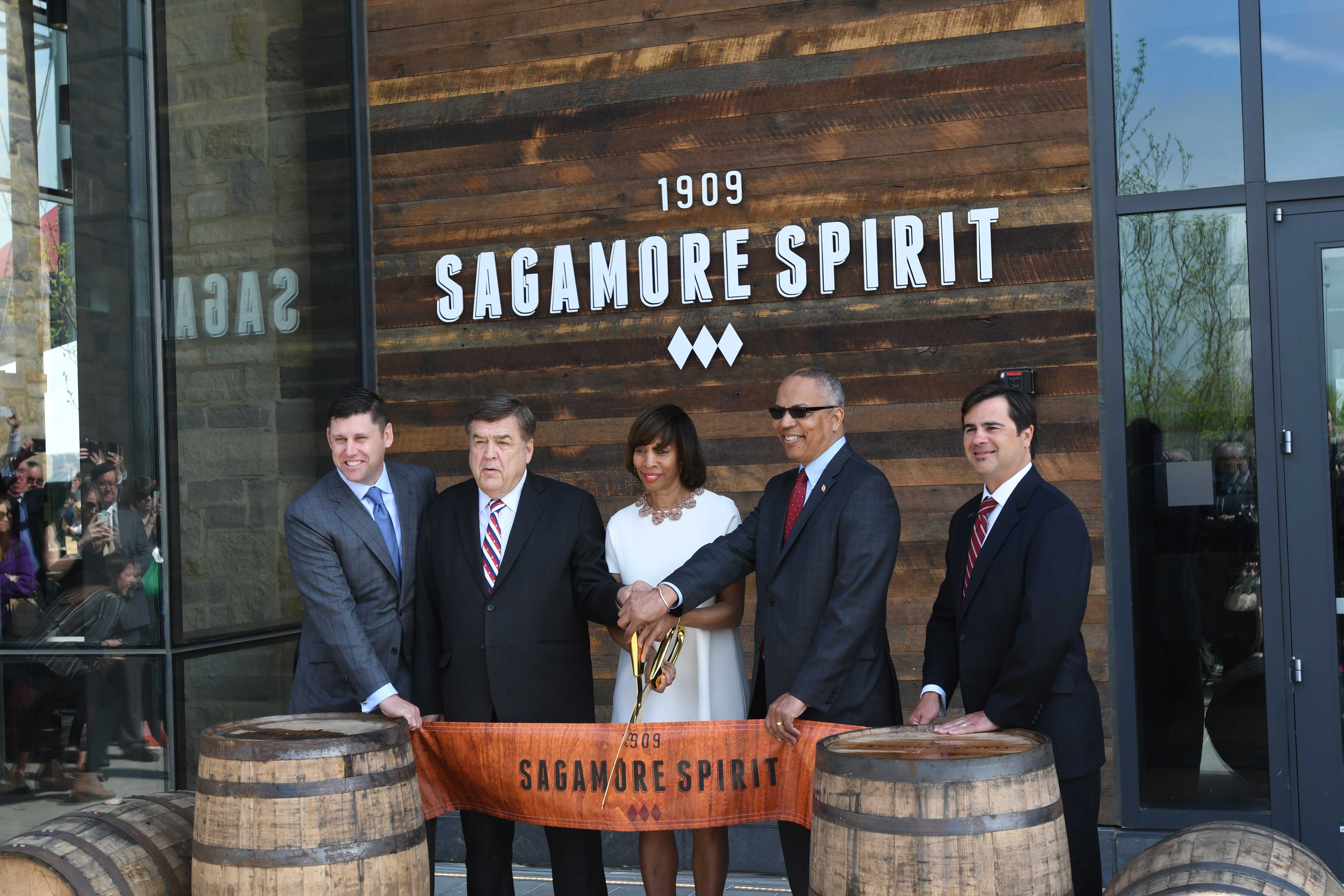 Sagamore Spirit Distillery grand opening ribbon cutting. From left to right: Bill McDermond, Co-Founder Sagamore Spirit, C.A. Dutch Ruppersberger, U.S. Rep for Maryland’s 2nd Congressional District, Catherine Pugh, Baltimore City Mayor, Boyd Rutherford, Maryland Lt. Governor and Brian Treacy, President Sagamore Spirit