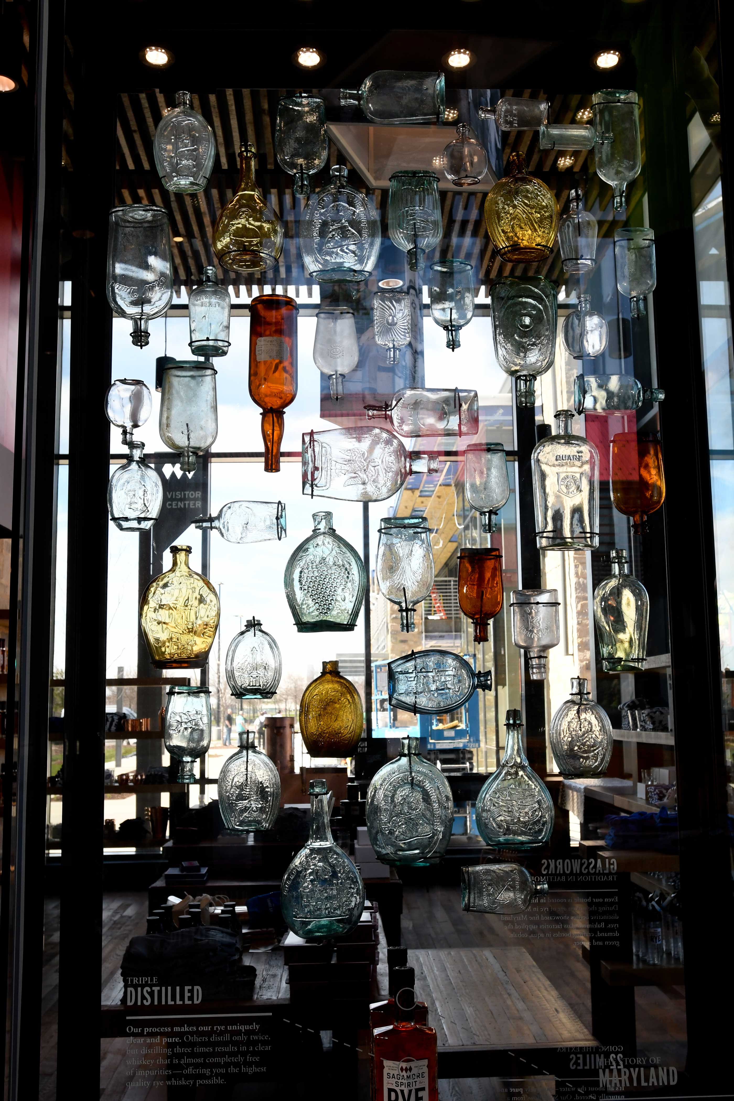 To celebrate Baltimore’s rich tradition of glass artisans and craftsmen, Solid Light designed a custom bottle sculpture featuring real bottles from Maryland’s distilling and glass manufacturing past, demonstrating the history captured in every bottle of Sagamore Rye