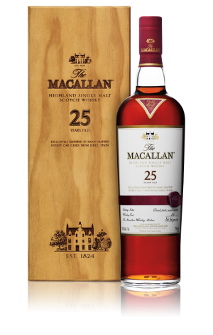 - Macallan 25 Year Sherry Oak – 43% – Sherry Oak – Producer’s Tasting Note: “Nose: Citrus, balanced with cinnamon, sherry and wood smoke. Palate: Full and rich with dried fruits and wood smoke. Finish: Long with dried fruits, wood smoke and spice.” – $1600