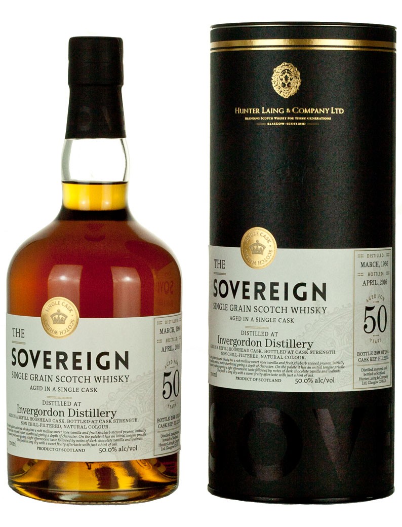 - Sovereign Invergordon 50 Year – 50% – Distilled March 1966 – Refill Hogshead Cask 12235 – Producer Tasting Note: “The nose is sweet and mellow with notes of vanilla, sherbet and butter shortbread. The palate is fruity and effervescent with aspects of dark chocolate and vanilla. The finish is long and dry with sweet fruits and a hint of oak.” – $1100