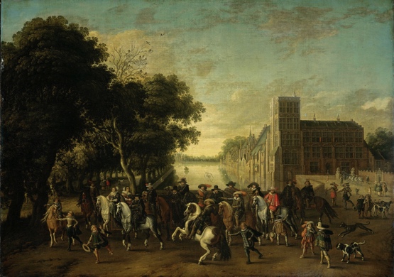 Painting of Prince Maurice in the company of Prince Frederick Henry, Frederick V and Elizabeth Stuart, King and Queen of Bohemia, (on left hand side) at the Buitenhof in The Hague. By Pauwels van Hillegaert. Courtesy of Rijksmusuem.
