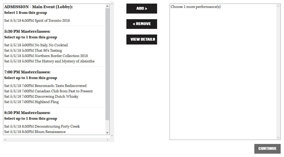 Furthermore please note that masterclasses cannot be purchased without including a ticket to Spirit of Toronto as part of your package.