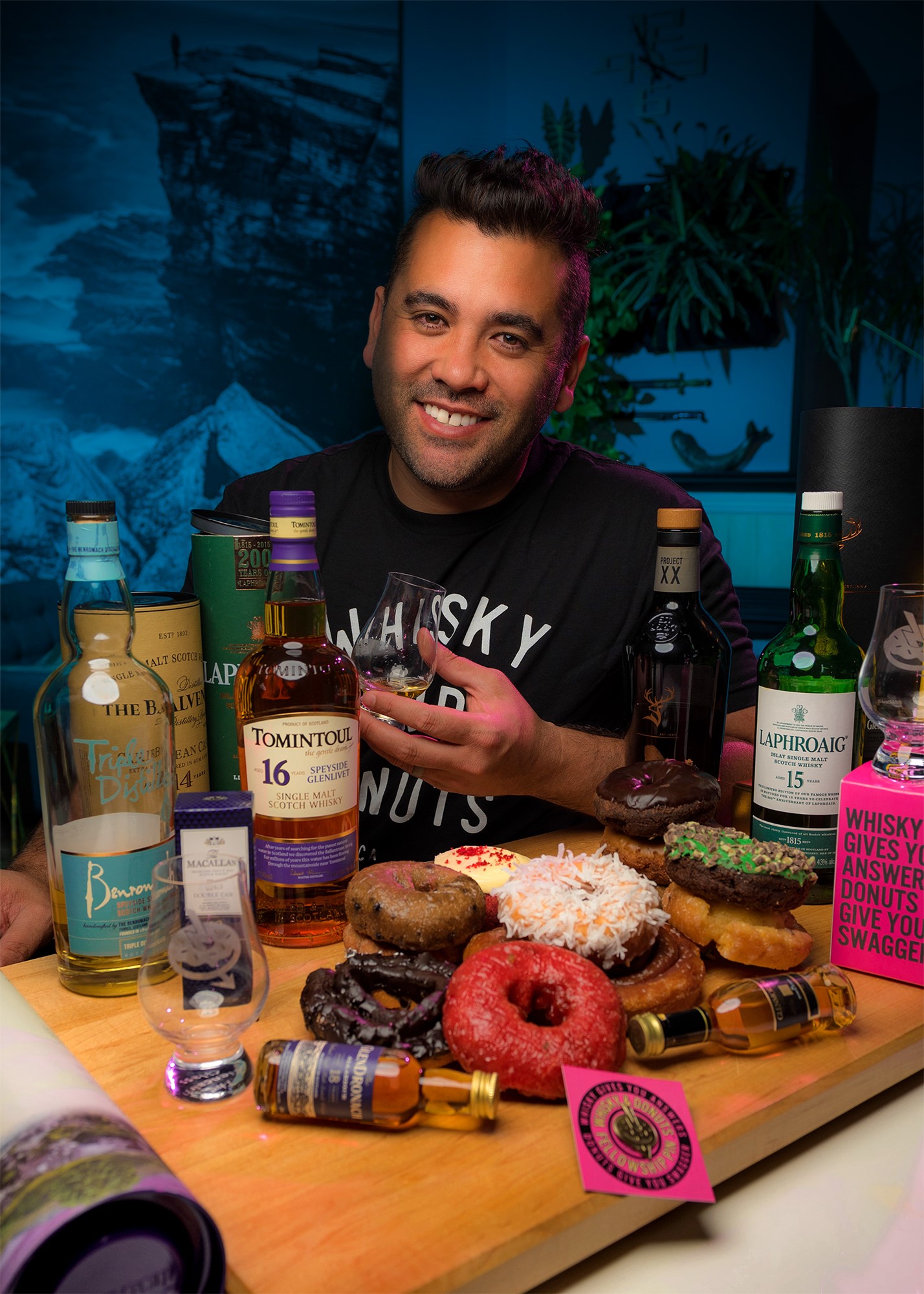 Johnny explains: “Shortly after our first trip to Scotland in 2015, we invited close friends over for dinner which included tastings of all the whiskies we brought back. It just so happened that we had picked up a box of donuts from our favourite shop earlier that day, and as the whisky was poured, the donut box made its way to the table.