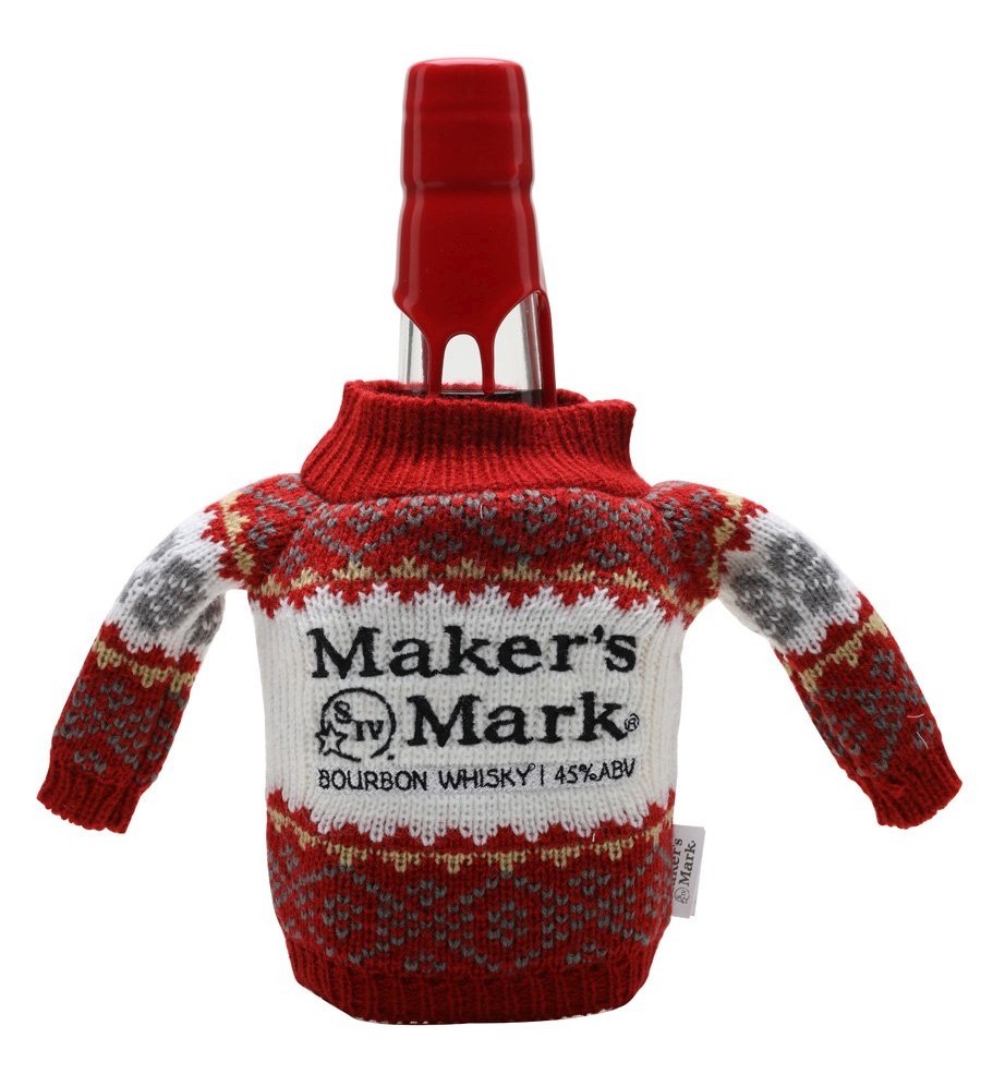 Yes, you did read that correctly, and it’s exactly what it sounds like. A bottle of Maker’s Mark Bourbon Whisky, swaddled in an appropriately stylish – and presumably very itchy – Christmas jumper, complete with ABV. Because nothing says ‘Merry Christmas’ like properly-observed European labelling standards. No, seriously – they make us feel all warm and fuzzy inside.