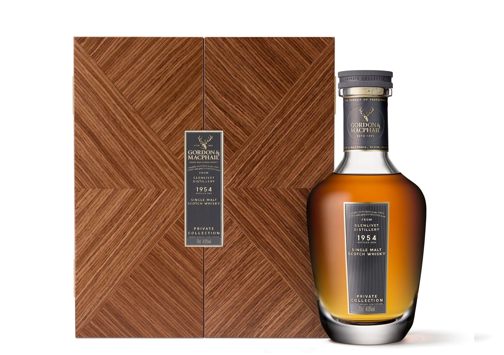 These ultra-rare single malts were selected for bottling by Stuart Urquhart, Gordon & MacPhail’s Associate Director of Whisky Supply and member of the fourth generation of the Urquhart family. Beautifully presented in hand-blown crystal decanters, each whisky is encased within a handmade wooden veneer box.