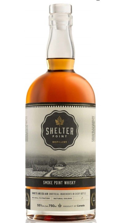 Shelter Point Smoke Point – 55% – Matured in ex-Bourbon – Finished 9 Months in ex-Laphroaig Quarter Casks – Producer Description: “Introducing Shelter Point’s first ever peat influenced whisky. This single grain smoky delight has been aged in American oak ex-bourbon casks for 5 years and finished in casks previously used by a famous Islay distillery for 8 months. This special bottling consists of only 1044 hand numbered bottles. The whisky is made from malted and unmalted barley and picks up influences of bourbon from the American oak cask and peated whisky from the ex-Islay casks. Sweet, smoky and complex, this whisky is perfect for a dram by the fire.” – Producer Tasting Note: “Smoke Point whisky is sweet, medicinal and smoky on the nose with barley sugars, iodine and campfire. The palate is sweet caramel, vanilla and sea salt, with peated warmth comforting the soul. The satisfying finish is a delicious combination of creamy pudding and a brand new first aid kit.” – $94