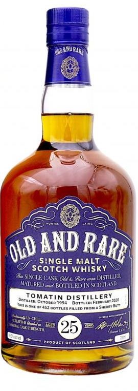 - Old & Rare Tomatin Sherry 25 Year – 49.3% – 1994 – Sherry Butt – Producer Tasting Note: “Nose: Vanilla, dark chocolate, and marzipan. Palate: Fruity with notes of plums and plenty of chocolatey, berries, and a hint of nuts. Finish: Long with pleasant lingering sweetness.” – $490 – 92pts Whisky Base