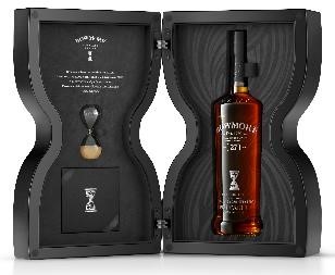 The Bowmore Timeless Series is housed in a distinctive black box, inspired by the classic hourglass shape. Inside, the bottle sits alongside an hourglass, which once turned allows nature’s gravity to release the grains of sand into the base of the hourglass giving three precious minutes to enjoy the nose of this beautifully balanced masterpiece that has taken decades to perfect.