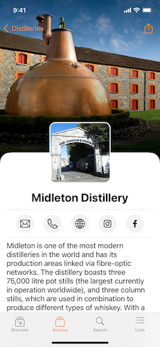 The Discover feature of the app is reminiscent of the App Store itself, with trending whiskeys, brand of the week and more. With curated content that is refreshed daily, even the most passionate Irish whiskey fans are sure to find interesting bottlings, brands and distilleries.