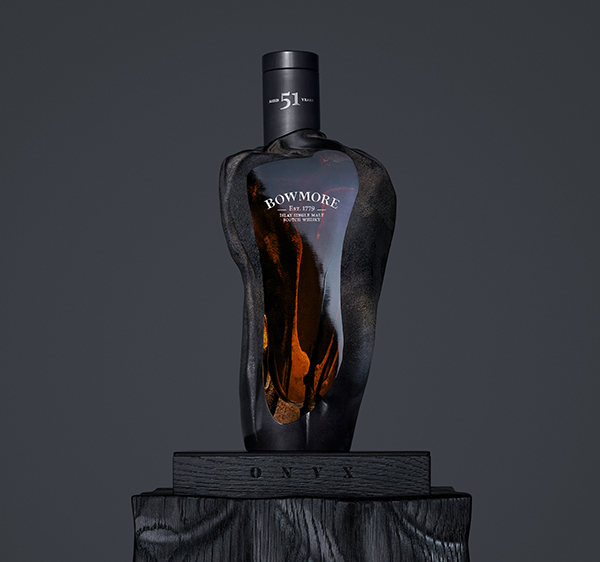 Bowmore Onyx is the encapsulation of time, with over half a century of craftsmanship, quality and character embedded in its creation and story. Presented in a striking, hand blown black glass vessel, containing 1.4 litres of ultra-rare whisky, the bottle’s one-of-a-kind glass structure celebrates Islay and is a masterpiece in glass design, being the first structure of this size and style to ever house Bowmore. Hand blown by the expert team at Glasstorm, who previously crafted the exclusive Bowmore 1957 which sold at Sotheby’s for £363,000, and the stunning Black Bowmore DB5 1964, this beautiful art piece takes direct inspiration from the striking rock formations of Islay.
