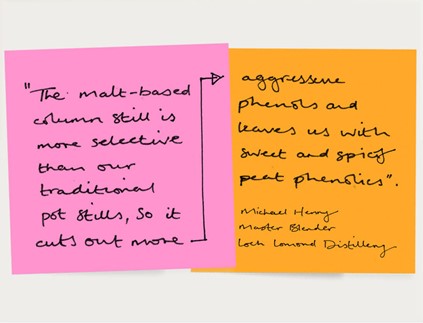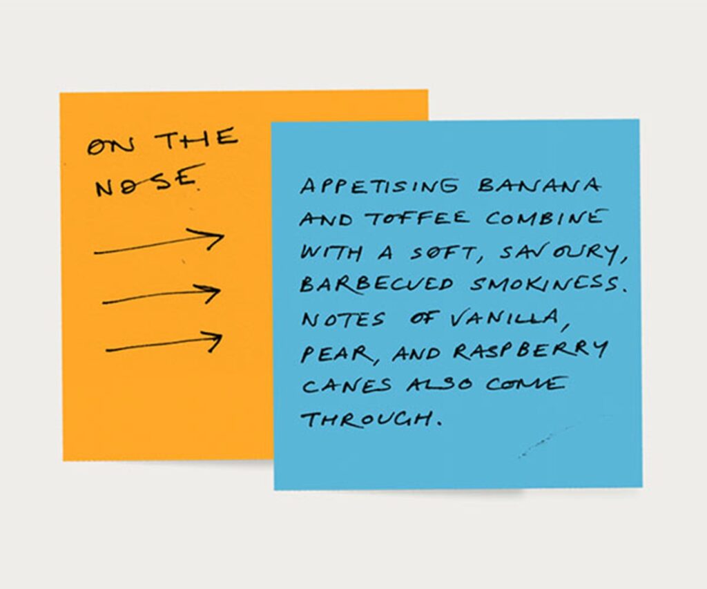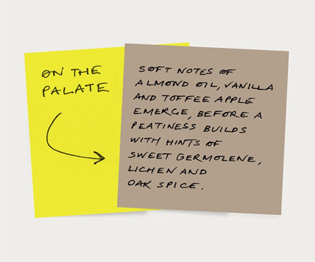 - Nose: Layers of smoked pine nuts, ginger and cigar box, followed by heather honey, soft spice and burnt brown sugar.