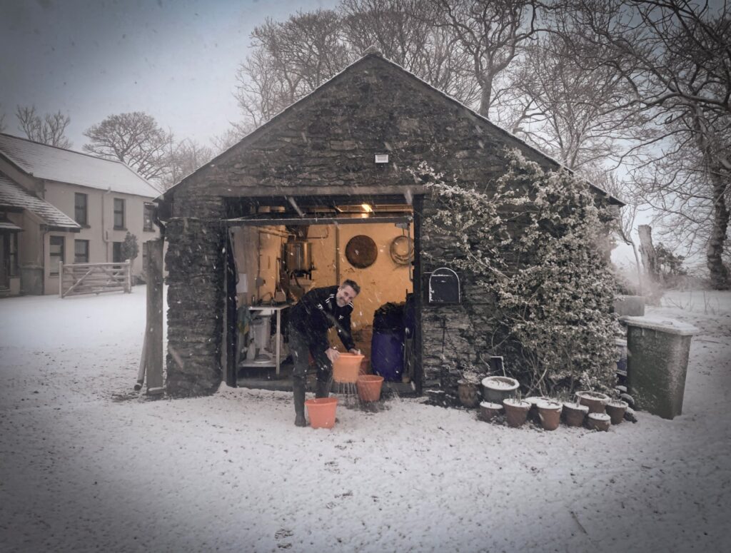 Wee chat with Magnus; “Hi Paul, We are just outside Baldrine (Paul’s note; near the Laxey Wheel, went there as a wee lad). Scott is mostly working with the farmers and is also doing the barley cleaning and all logistics related to this. He also builds some of our custom made equipment (you’d be surprised how little equipment there is off the shelf for microscopic distilleries!), I do the rest of the production – malting, mashing, fermentation, distilling and oversee the maturation (all this is done on site”).