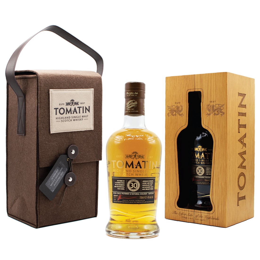 This award-winning single malt from Tomatin Distillery was aged for 30 years in a combination of an ex-bourbon and oak casks. It was bottled without chill-filtration or artificial colouring.