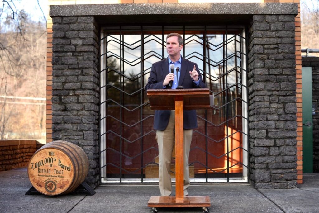 Governor Andy Beshear speaking at Buffalo Trace’s 8 mil barrel ceremony