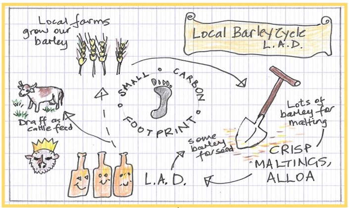 At Lindores we are always trying to reduce our energy consumption and one of the ways we do this is to make sure our barley comes from farms within a five mile radius of the distillery and that we use local firms whenever possible. Our barley is malted at Crisp Maltings in Alloa then transported back here; and then we place orders for malt with Crisp for next year. Meantime Crisp use some of our farmers’ crop for seed for next year, and sell the seed back to them when they are planning their planting. We keep in touch with the farmers and have a daily awareness of how next year’s crop is going; and the cows eat our draff. The team can watch the barley growing from the distillery hall. How many distillery teams could make such a claim?