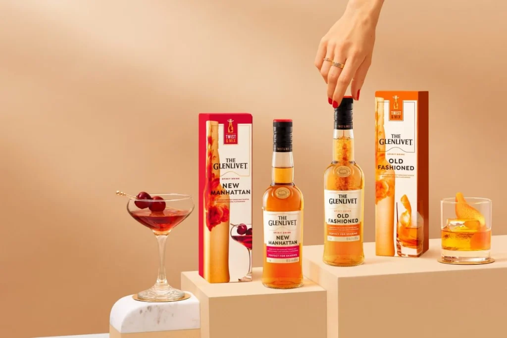 The Glenlivet Twist & Mix Cocktails are a first not only for Scotch, but for the broader spirits category – setting a new standard for ready-to-drink cocktails using the patented Vessl® closure and mixing technology. The range enables whisky lovers to enjoy these iconic cocktails more often and as part of an elevated at-home experience.