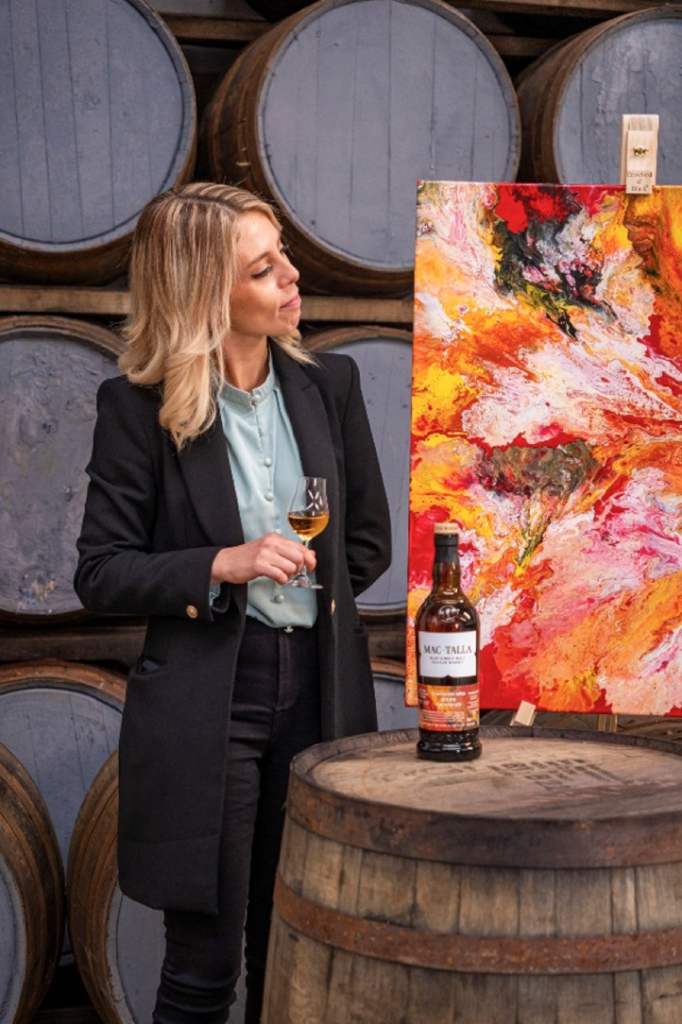 Working with the Mac-Talla Team and their new range, Marzia has produced a series of paintings which Mac-Talla are proud to display on the label of their new small-batch bottlings, exclusively available in the UK. Each artwork translates the tastes of the liquid into a stunning visual, capturing the essence of the whisky’s personality on canvas. Marzia Sileno said of the project: