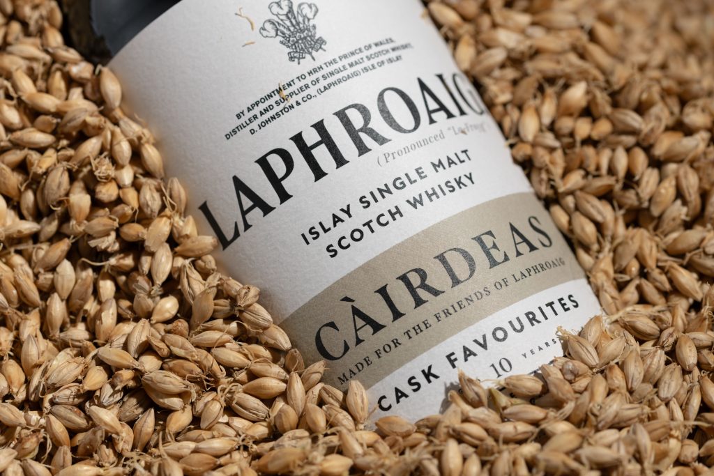 Laphroaig Càirdeas 2024 Cask Favourites: Developed in ex-Bourbon barrels, this single malt combines the distinctive peaty flavor of Laphroaig with notes of freshly ground ginger, charred citrus fruits, and a whisper of bonfire notes embers through on the finish. The celebratory malt is bottled at a fixed strength for a memorable experience to share with friends.