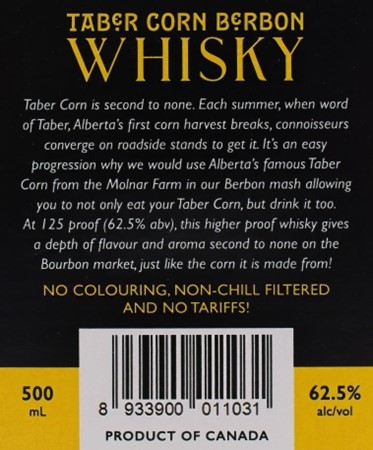 I have seen and tasted quite a few Bourbon-style whiskies from other Canadian distilleries. One of my favourites has been Bridgeland Distillery’s Taber Corn Berbon 101.