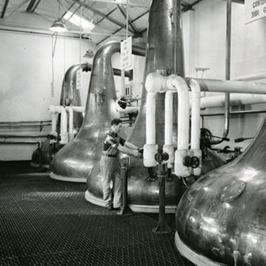In 1964 the number of stills were doubled to 4, the number of wash backs were also increased at this point from 4 to 6. A new boiler joined the earlier one during these improvements. Another development was that the direct firing of the stills was replaced by steam coil heating around this time. Cooling was via worms in a cast iron tank, unlike many other sites shell and tube condensers never replaced this traditional method. All the stills were onion shaped and roughly held the same capacity. Output did not exceed 1mlpa.
