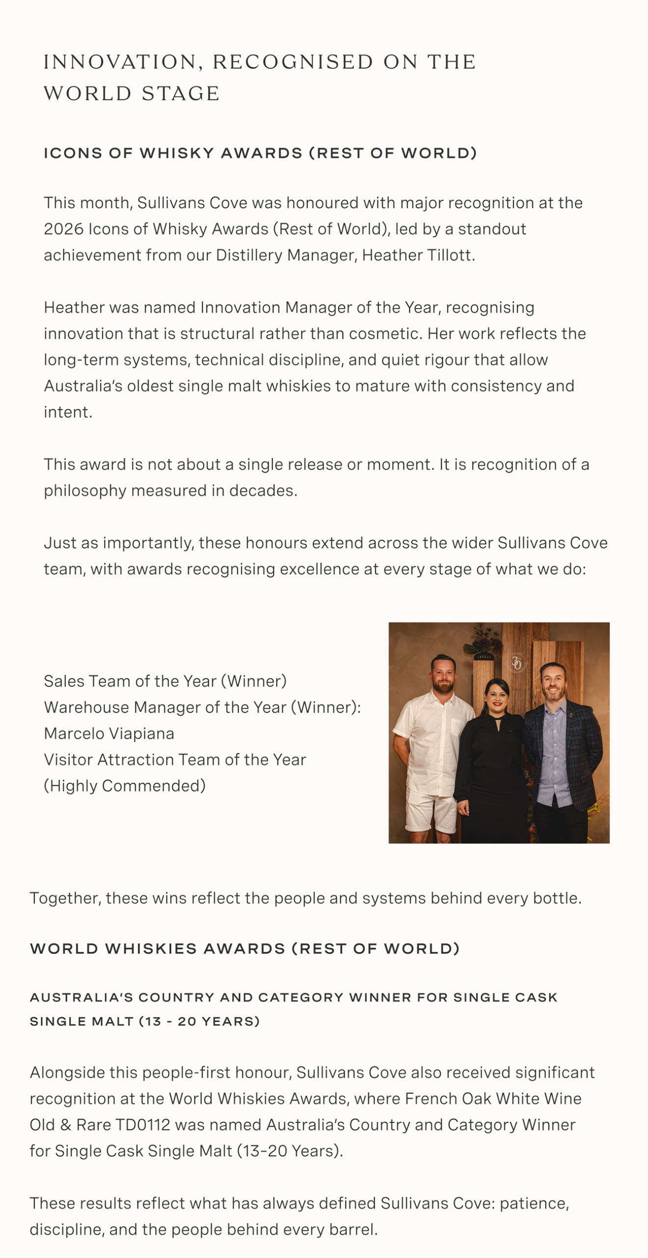 Defining Honour for Sullivans Cove at Icons of Whisky Awards (Rest of World) – Tasmanian Whisky News