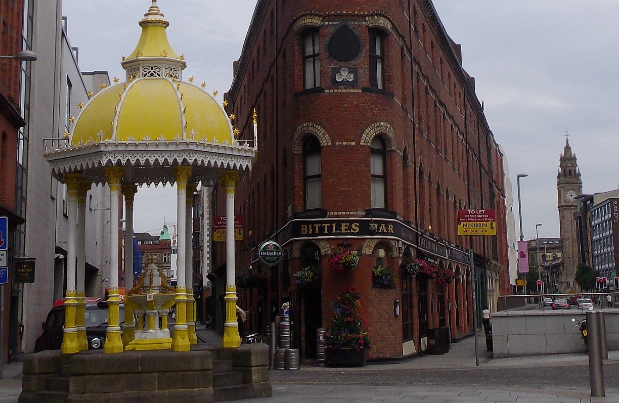 Wednesday; cousins in tow we hit what I think the best whiskey pub in the city; Bittles Bar is located close to Victoria Square. Red-bricked and ‘flat-iron’ in shape Bittles is a traditional Victorian Bar. Founded in 1868 the bar was originally called the Shakespeare reflecting is theatrical clientele. It offers one of Belfast’s widest selections of local and international draught and bottle beers and ciders and is famed for its extensive whiskey (and whisky) collection. I sampled a few, chatting to John about his collection of whiskey – some rare old drams here, he offered me a lovely dram, then said “£100 a dram” I reluctantly turned it doon. But did try a good few, met a few locals, had far to long sitting there, by the time we departed, Sean had disappeared, I was heavy with the Irish gold, Pat was slumpin, so we sat down outside Whites bar for a while – founded 1630, we all felt as if we were at the opening night, grim stuff. Sean turned up as we ordered a round, he does that. It was 3pm and bed called me loudly! We left Whites and had a doze in the park benches at City Hall, no a good sight, we did think the Guards would move us, we were fine. By 4.30 we were almost alive again and found some food, when I say food, dinnae mean Macdonalds by the way. Bellies full – mine is too big – we headed to The Duke of York; Traditional Belfast bar crammed with original mirrors and memorabilia. Cold beer, great Guinness and the largest selection of Irish whiskeys in Ireland. We know, we tried some! Ended up in ma bed! Family gone home.